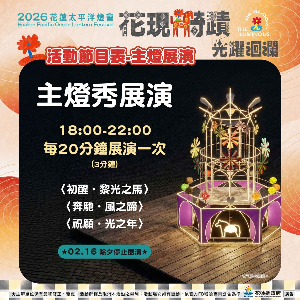 3 不用做功課,攻略都在這! ♞花現騎蹟|光躍洄瀾♞【倒數 2 天】不用做功課,攻略都在這! 花生編拍胸脯保證:今年花蓮燈會再升級,真的讓人沈浸到不想回家!從日出大道的 會呼吸的主燈,到充滿香氣的 植物染森林,還有隱藏在商圈的 小石花 AR,絕對讓你相機按不停! 花生編已經幫你把「必看、必拿、不能錯過」全部整理成圖卡啦!快按儲存、丟進群組,2/7 晚上,我們日出大道見 ‧˚₊☆ .・°‧˚₊☆ .・°‧˚₊☆ .・°‧˚₊☆ .・°‧˚₊☆ .・°2026花蓮太平洋燈會 ♞花現騎蹟 光躍洄瀾♞活動地點:花蓮市日出大道(重慶市場、東大門夜市旁) 活動日期: 2026.02.07(六) – 03.08(日)每晚18:00~22:00. (2月16日除夕休息 ) 還沒追蹤?快鎖定我們 「花蓮觀光粉絲團」FB https://reurl.cc/dqv7E6IG https://reurl.cc/aM71oDThreads https://reurl.cc/EbaGEa花蓮旅遊小助理 https://hualien.travel/ai-service/ 主辦單位保有活動最終解釋權#花蓮 #2026花蓮燈會 #花現騎蹟光躍洄瀾 #開幕懶人包 #存圖必備 #倒數2天 2026花蓮太平洋燈會TheLuminousWeBloom光之藝術節花現騎蹟光躍洄瀾花蓮山海之光花蓮旅遊