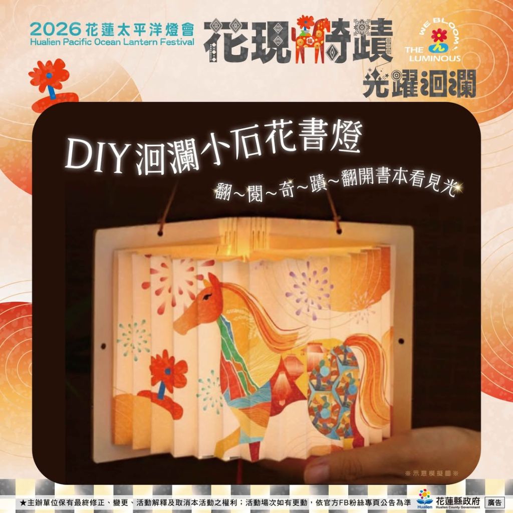 0 翻閱奇蹟|元宵提燈 ♞花現騎蹟|光躍洄瀾♞ 翻閱奇蹟|元宵提燈 今年,我們想把象徵「翻閱奇蹟」的元宵書燈,親手送給你。從日出大道開始,讓奇蹟一頁一頁被翻開;在新的一年裡,讓來自花蓮的祝福之光,溫柔陪伴每一個奇蹟發生的時刻。 2/7–3/2|18:30–21:30|每日限量 50 份 3/3 元宵|888 份|16:00開放排隊 / 16:30 開始發放 日出大道|送完為止‧˚₊☆ .・°‧˚₊☆ .・°‧˚₊☆ .・°‧˚₊☆ .・°‧˚₊☆ .・°2026花蓮太平洋燈會 ♞花現騎蹟 光躍洄瀾♞活動地點:花蓮市日出大道(重慶市場、東大門夜市旁) 活動日期: 2026.02.07(六) – 03.08(日)每晚18:00~22:00 (2月16日除夕休息 ) 還沒追蹤?快鎖定我們 「花蓮觀光粉絲團」FB https://reurl.cc/dqv7E6IG https://reurl.cc/aM71oDThreads https://reurl.cc/EbaGEa花蓮旅遊小助理 https://hualien.travel/ai-service/ 主辦單位保有活動最終解釋權#花蓮 #2026花蓮燈會 #花現騎蹟光躍洄瀾 #翻閱奇蹟 #質感提燈 #把光帶回家 #住海編選物 2026花蓮太平洋燈會TheLuminousWeBloom光之藝術節花現騎蹟光躍洄瀾花蓮山海之光花蓮旅遊
